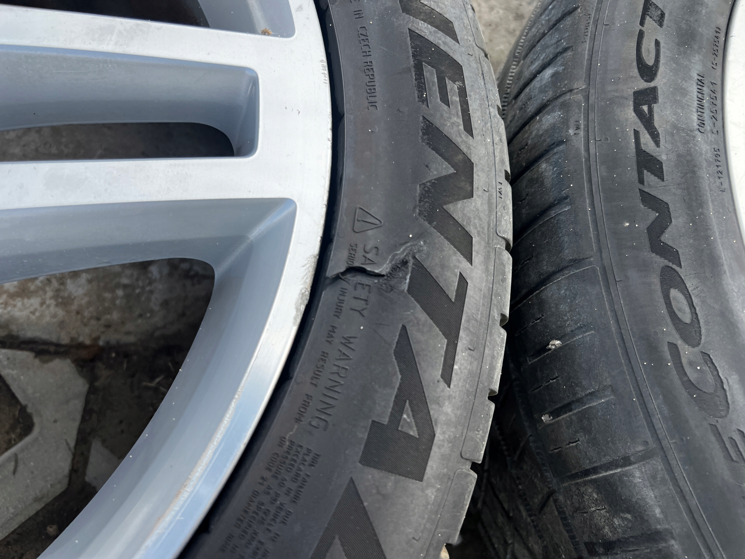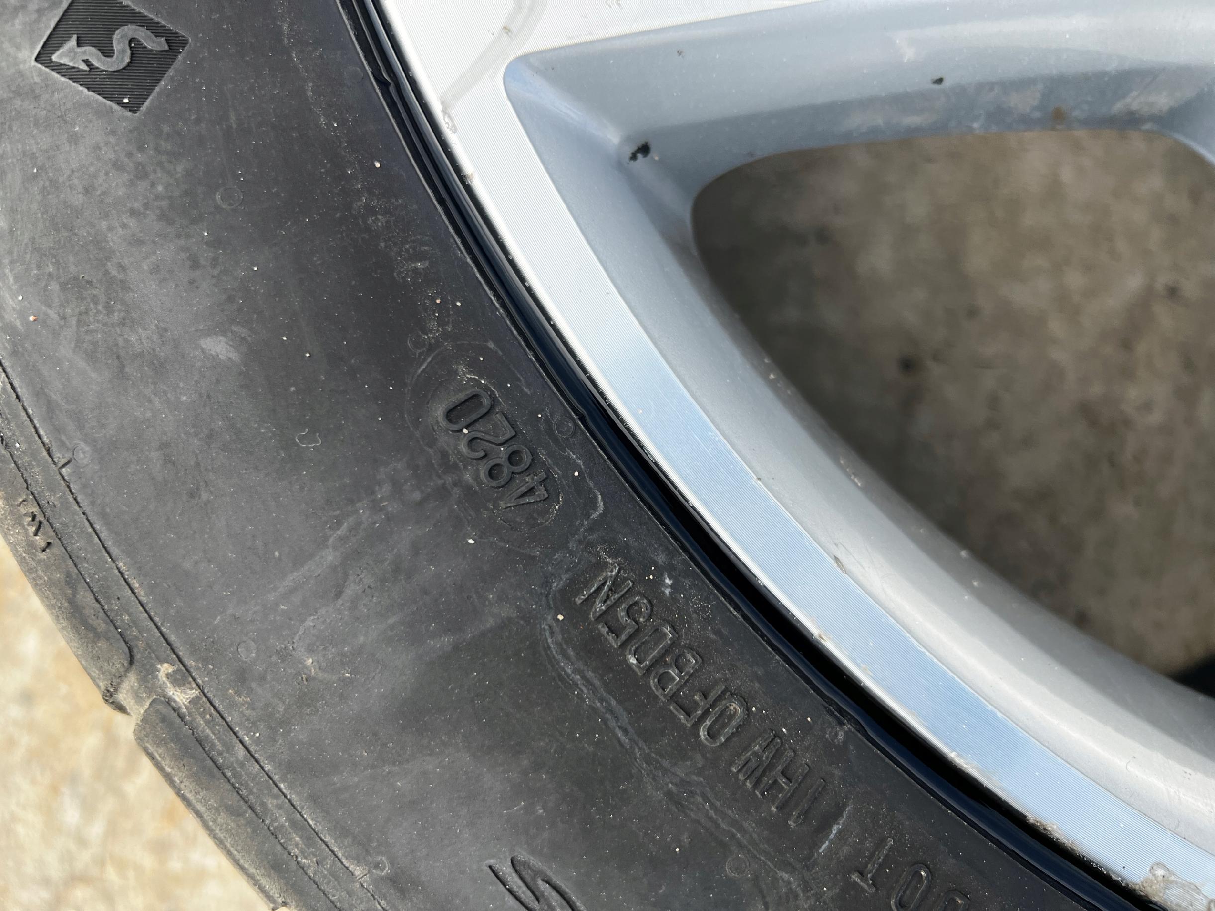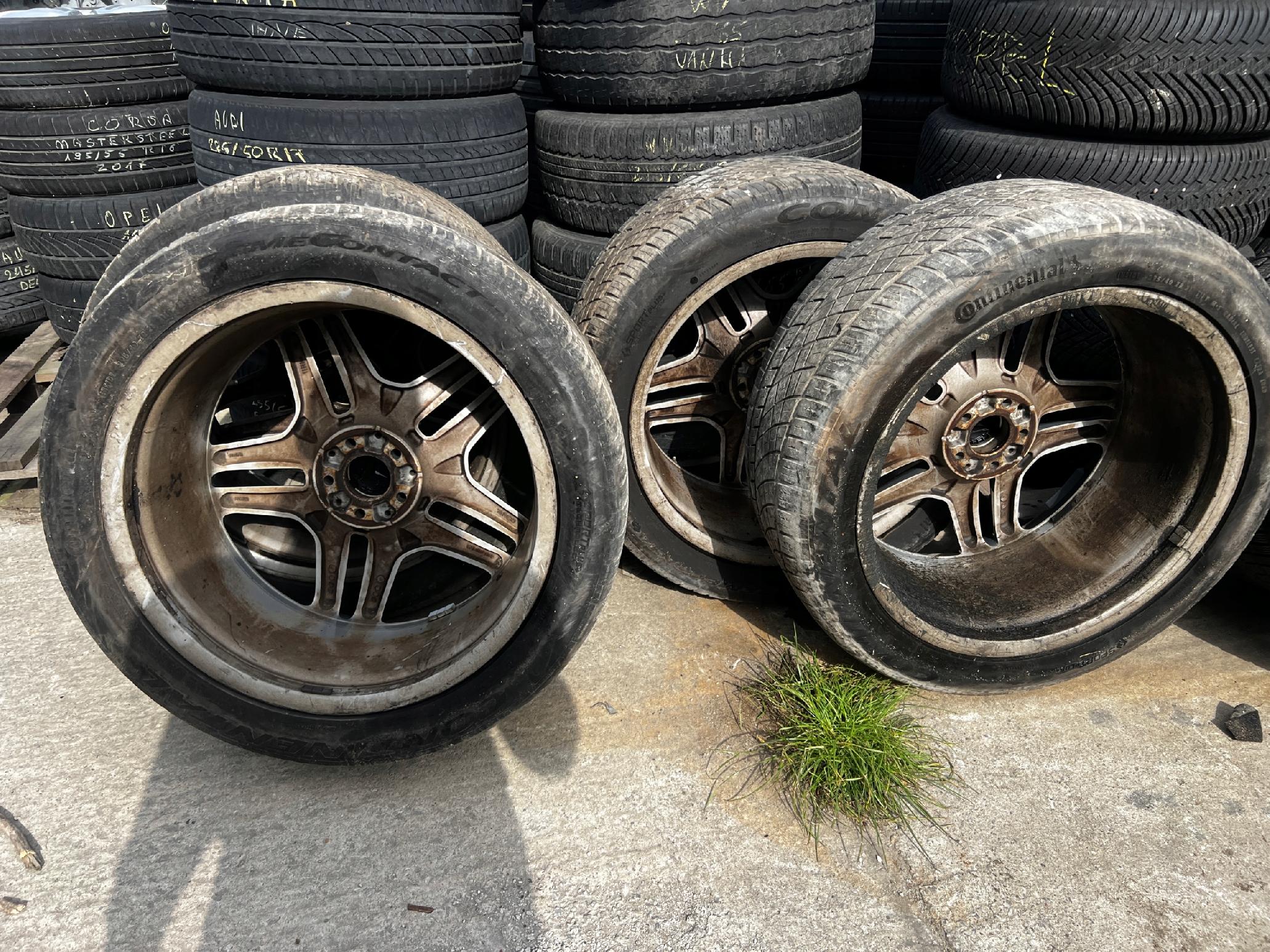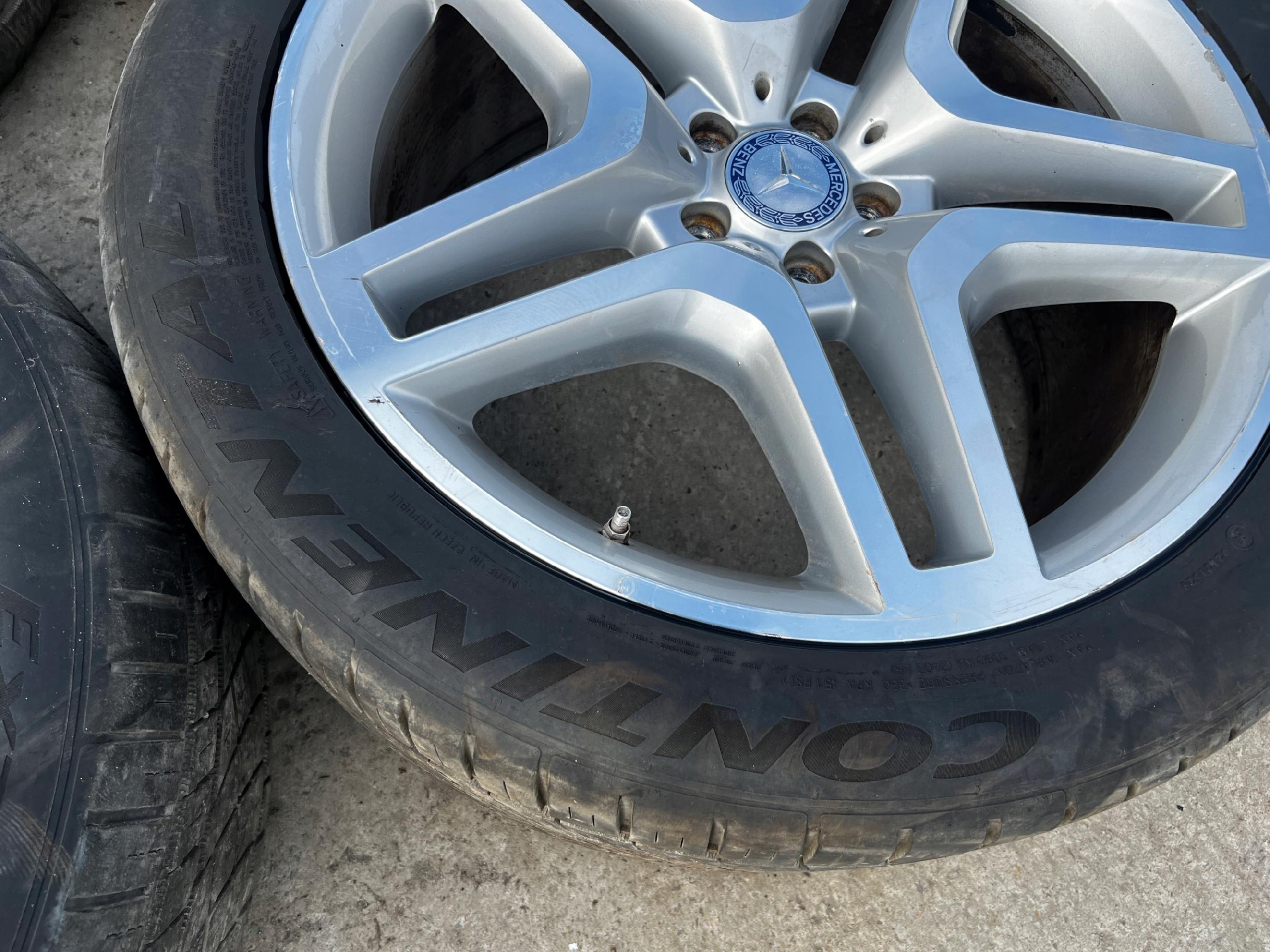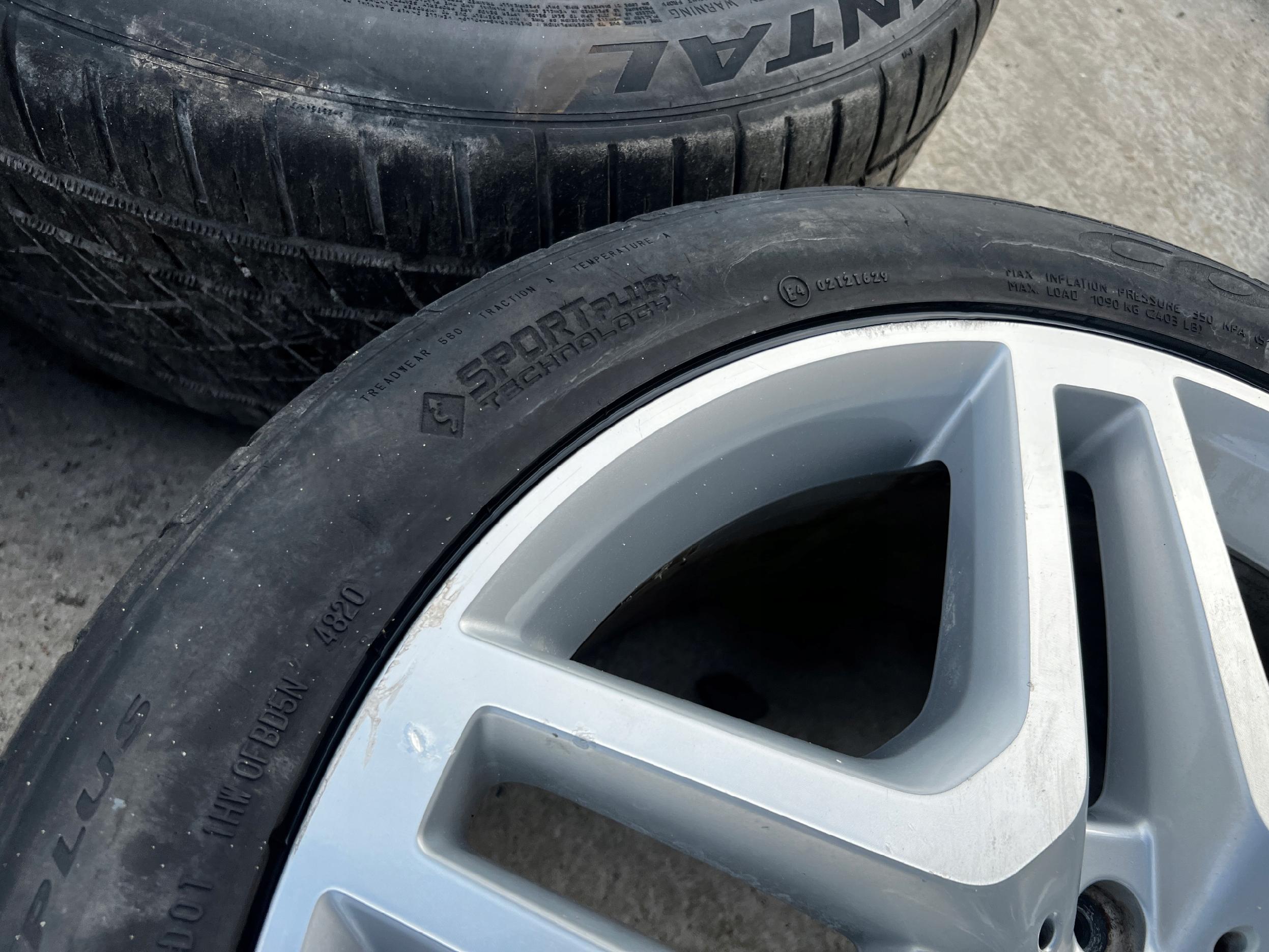STAN JAK NA FOTO – DWIE OPONY USZKODZONE Z BOKU, FELGI POSIADAJĄ ZARYSOWANIA