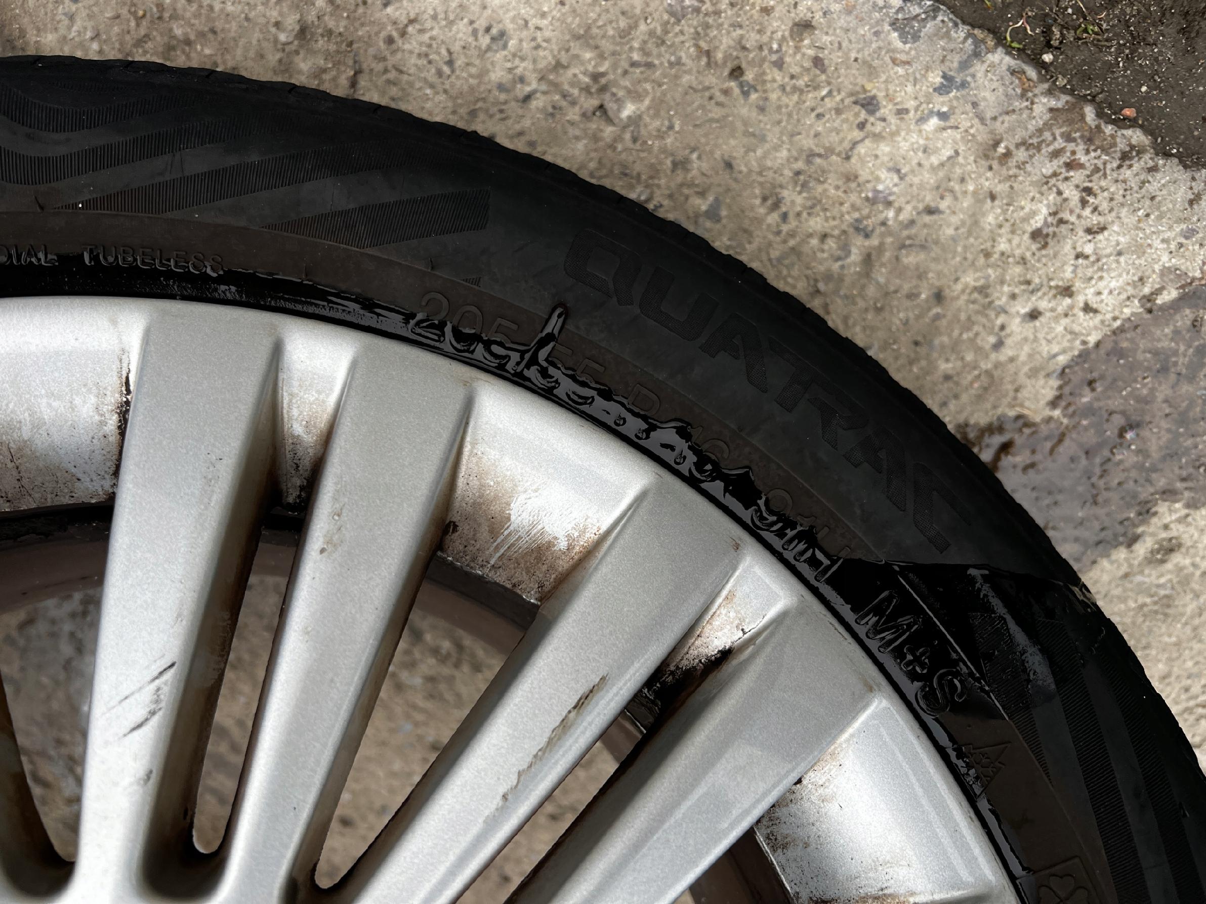 STAN JAK NA FOTO – JEDNA OPONA USZKODZONA