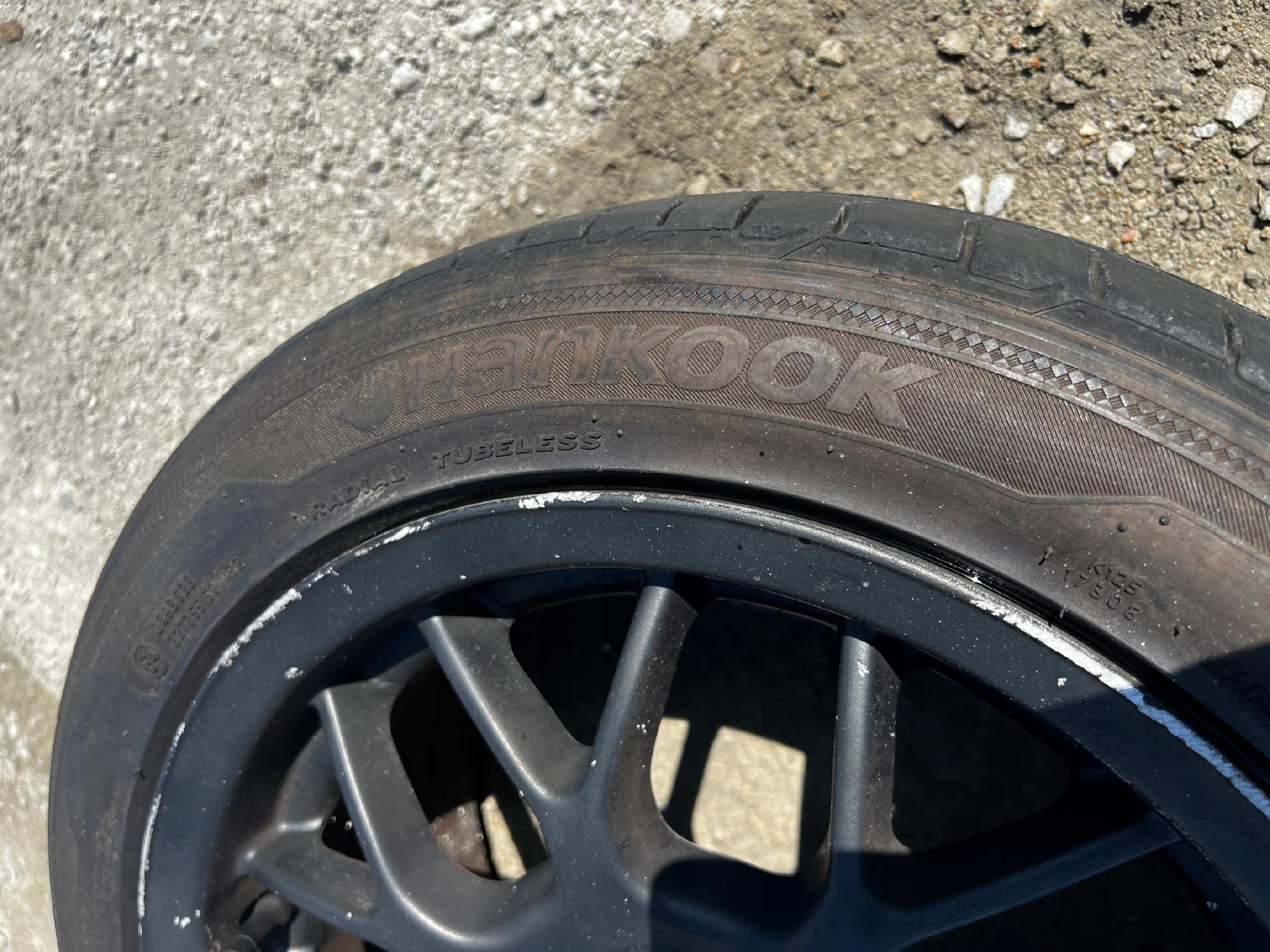 STAN JAK NA FOTO – JEDNA OPONA USZKODZONA