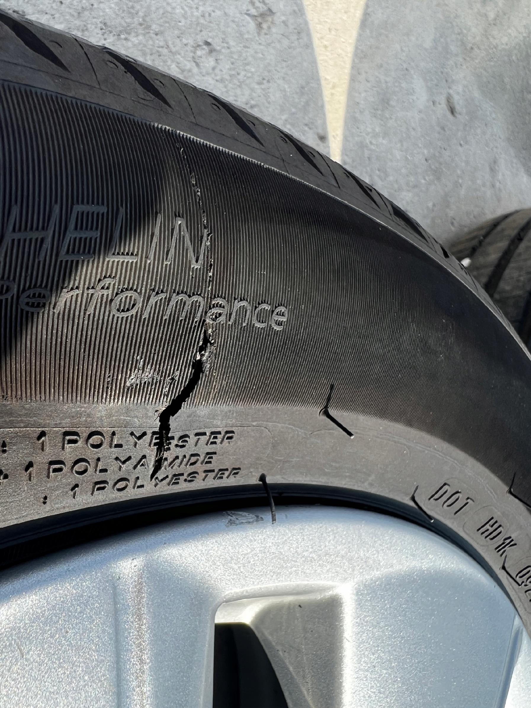 STAN JAK NA FOTO – JEDNA OPONA USZKODZONA