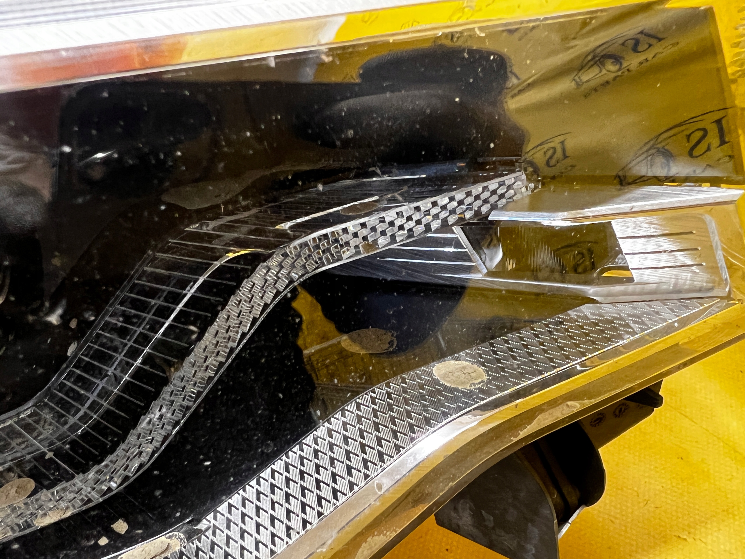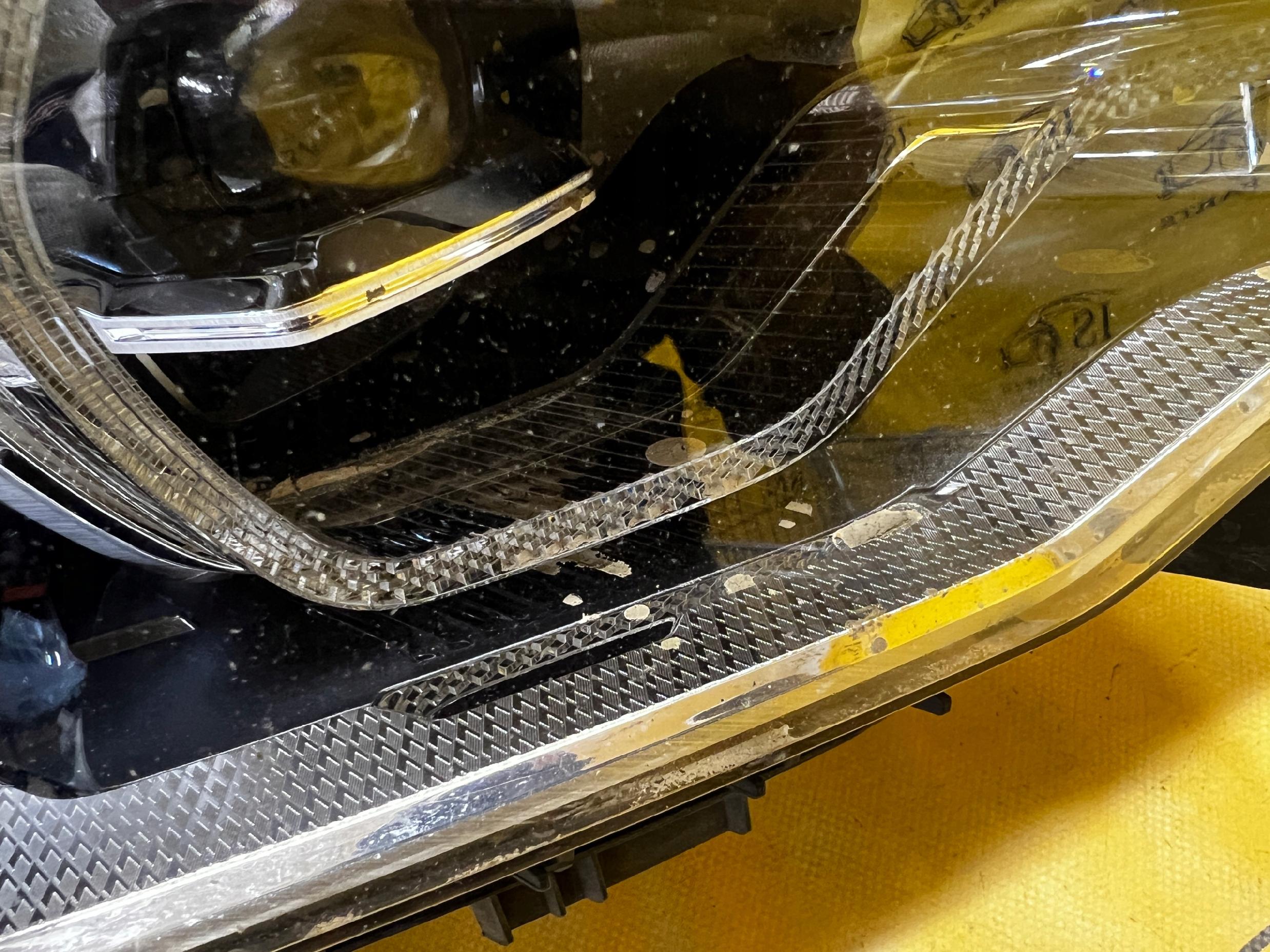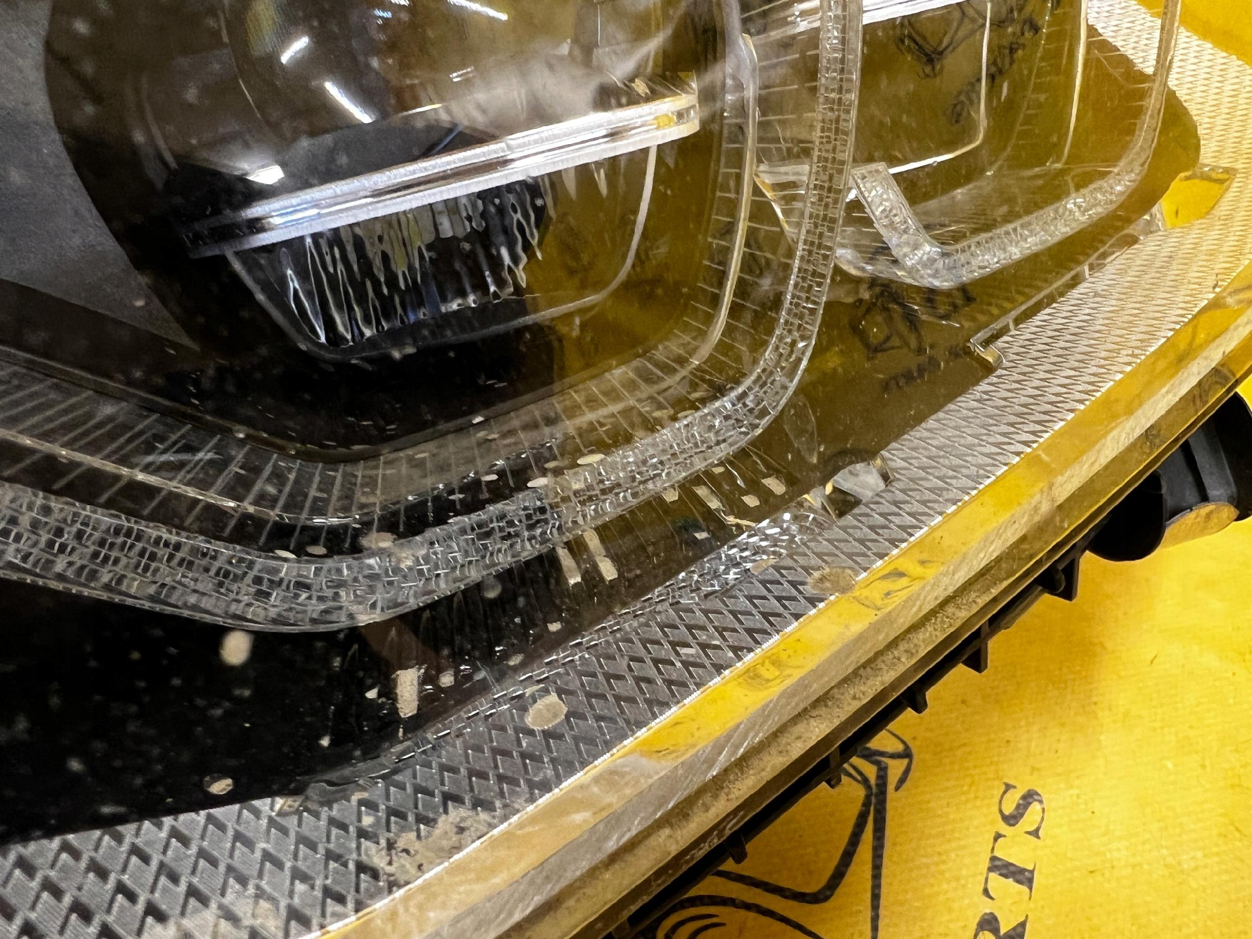 STAN JAK NA FOTO – WIDOCZNE USZKODZENIE OBUDOWY REFLEKTORA, NIESZCZELNOŚĆ REFLEKTORÓW, ŚLADY WILGOCI W ŚRODKU