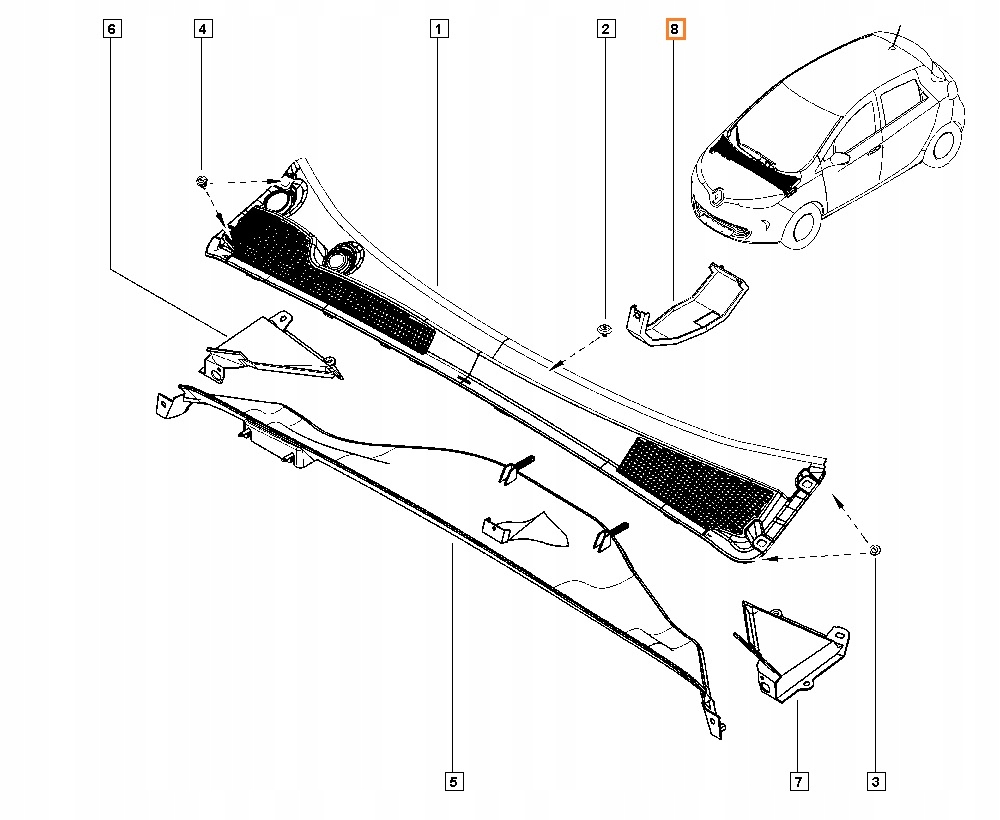 WSPORNIK MOCOWANIE PODSZYBIA LISTWY POD PRZEDNIĄ SZYBĄ RENAULT ZOE I Z.E.